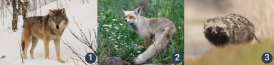 - vlk obecný (1) – V Česku vyhuben, v roce 2014 se zde opět začal rozmnožovat a jeho počty stoupají. Není přímým ohrožením člověka, může však způsobovat škody na hospodářských zvířatech (to vede k rozporům mezi hospodáři a ochránci přírody). Z vlka byl vyšlechtěn pes.
