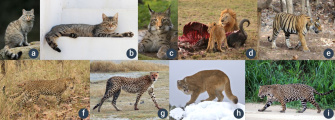 - tygr (e) – Největší kočkovitá šelma, má různé poddruhy (např. tygr indický, kriticky ohrožený tygr sumaterský, tygr ussurijský žijící v tajze).
