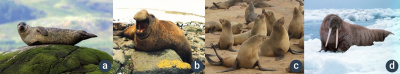 - rypouš sloní (b) – Největší ploutvonožec, náleží mezi tuleňovité, žije na jižní polokouli.