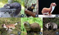 - jezevec lesní (f) – Měří až 85 cm, černo-šedo-bílé zbarvení, žije v norách.