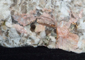 Žilné vyvřelé horniny vznikají tuhnutím magmatu v puklinách. Příkladem je pegmatit (c).
