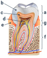 Dutina ústní obsahuje jazyk z kosterní svaloviny a zuby. Mléčný (dočasný) chrup člověka sestává z 20 zubů, trvalý ze 32 zubů. Každá ½ čelisti dospělého obsahuje 2 řezáky, 1 špičák, 2 třenové zuby a 3 stoličky. Zuby se člení na korunku (1), krček (2) a kořen(y) (3). Povrch korunky je kryt sklovinou (4), pod ní je zubovina (dentin, 5), uvnitř zubu je dřeň (6) s cévami a nervy. Kyseliny vytvářené bakteriemi mohou ničit tkáně zubu a zapříčinit vznik zubního kazu. Tomu je výhodné předcházet náležitou ústní hygienou.