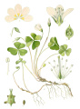 • šťavel kyselý (j) – Má trojčetné listy a pětičetné květy s bílými korunními lístky (ty mají fialovou žilnatinu).