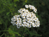 - řebříček obecný (b) – Má členěné listy a bílá květenství.