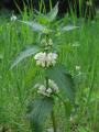 - hluchavka bílá (8) – Bílé souměrné květy, křižmostojné listy.