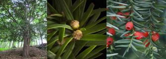 - tis červený (g) – Často vysazovaný jako okrasný, prudce jedovatý. Dvoudomý, samičí stromy mají semena v červených dužnatých míšcích (tisinky), ty žerou a rozšiřují ptáci.