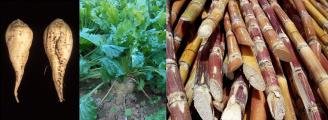 - sacharosa – V mírném pásu se získává z cukrové řepy, zdrojem sacharosy v (sub)tropech je cukrová třtina. Tento cukr je běžně využíván v kuchyni (krystal, krupice, moučka). Hnědý řepný či třtinový cukr je buď nerafinovaný (obsahuje zbytky melasy), nebo druhotně obarvený karamelem. Hnědý i bílý cukr jsou prakticky jen sacharóza, jejich vliv na organismus je tedy totožný. Molekula sestává z jednotky glukosy a jednotky fruktosy.
