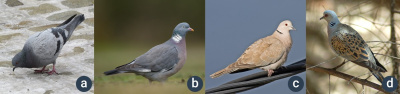 Mezi měkkozobé patří např. holub domácí (i) původně chovaný pro maso a přenos zpráv. Holub hřivnáč (j) je ve srovnání s holubem domácím větší a má světlé skvrny na stranách krku. Hrdlička zahradní (k) se na území Česka rozšířila z Balkánu, má černý pruh na krku a světle šedé peří. Původní hrdlička divoká (l) má na krku pruhů více.