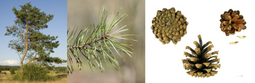 - borovice lesní (a, sosna) – Má jehlice po dvou, borka vespod kmene je šedohnědá a rozpukaná, výše se odlupuje v rezavých šupinkách.
