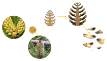 - borovice vejmutovka (i) – Ze Severní Ameriky, má velmi jemné jehlice ve svazečcích po pěti a protáhlé šišky.