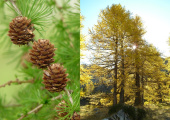 - modřín opadavý (d) – Má měkké jehlice na zkrácených větévkách, na zimu opadává.