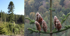 - smrk ztepilý (c) – Na území Česka přirozeně na horách. Často pěstovaný pro dřevo (pro využití ve stavebnictví, k výrobě papíru či hudebních nástrojů). Monokultury smrku bývají napadány lýkožroutem smrkovým.