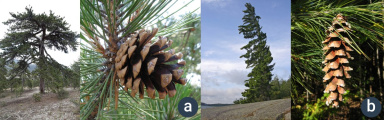 - borovice kleč (b, kosodřevina) – Původní v horských oblastech, pěstovaná jako okrasná.