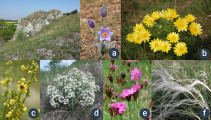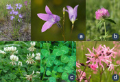• šalvěj luční (c) – Má fialové souměrné květy, v teplejších oblastech.