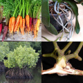 Rostliny mohou mít hlavní kořen a kořeny vedlejší (1) nebo svazčité kořeny (2).