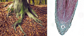 Kořen u cévnatých rostlin uchycuje rostlinu v půdě nebo na podkladu. Rostlina pomocí něj přijímá vodu a minerální látky. Kořen je nečlánkovaný, většinou nezelený a většinou roste ve směru působení tíhové síly. Kořenová čepička chrání dělivá pletiva na vrcholu kořene. Kořenové vlášení zvětšuje plochu kořene a usnadňuje vstřebávání živin, průběžně se obnovuje.