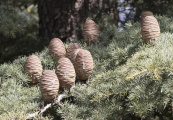 - borovice vejmutovka (i) – Ze Severní Ameriky, má velmi jemné jehlice ve svazečcích po pěti a protáhlé šišky.