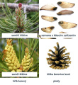 - borovice vejmutovka (i) – Ze Severní Ameriky, má velmi jemné jehlice ve svazečcích po pěti a protáhlé šišky.
