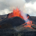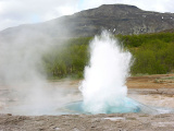 Sopečnou činnost (i po jejím vyhasnutí) mohou doprovázet např. výrony plynů a par (f), vývěry vod (g) či gejzíry (h).